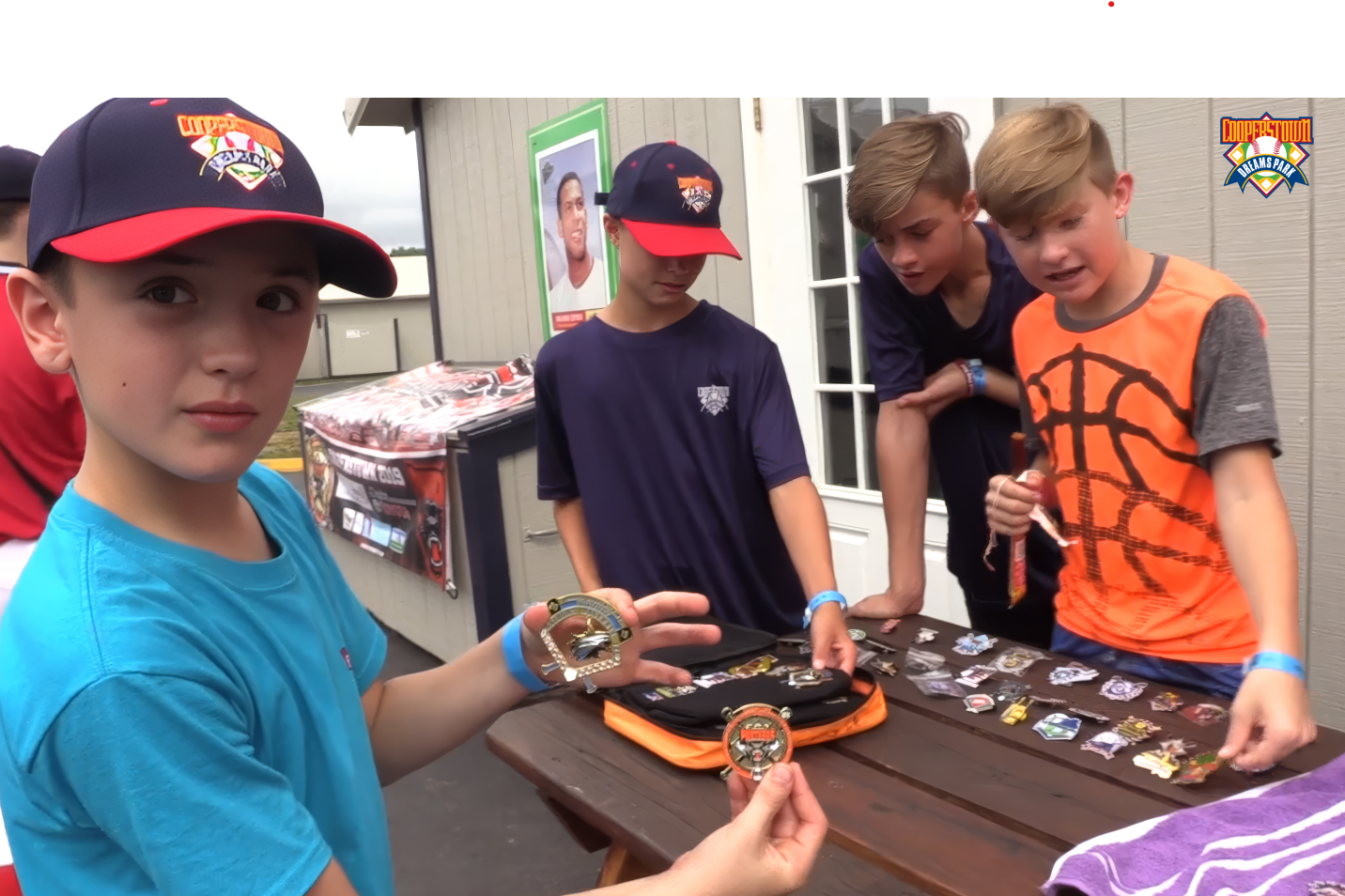 Anyone who is thinking of coming to Cooperstown Dreams Park is probably going to know about the famous (infamous?) baseball pin trading that goes down during the week of the tournament. Most teams bring lots of copies of their own team’s pin design to trade with the other kids and families for their team’s pin. Of course, there are lots of other pins to trade too!