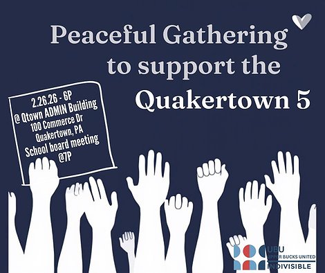 Upper Bucks United Indivisible has announced a “Peaceful Gathering to Support the Quakertown 5” scheduled for Thursday at 6 p.m. outside the Quakertown Community School District Administration Building, 100 Commerce Dr.