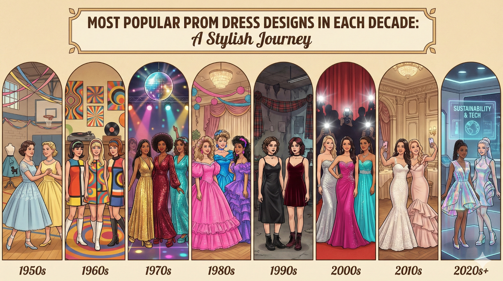 Prom dresses have been a staple of high school culture for decades, with each era bringing unique trends to the forefront. These iconic garments have marked a pivotal moment in the lives of young adults, while also reflecting broader societal shifts and influences. This is your guide to prom dress designs across the decades.