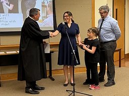 New members Vanessa Gaynor and Courtney Morgan both received their oaths and took their seats on the board, in a brief reorganization on Monday night.