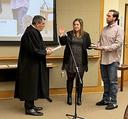 As friends and family members clapped and snapped photos, the two new supervisors each received their oaths from District Judge Ed Levine, followed shortly after by new township auditor Joe Rumsey and new tax collector Christian Fusco. All four Democrats prevailed against Republican candidates in last November’s election, as voters voiced concerns about proposed developments across the township, the impact those developments would have on traffic, flooding and public safety, and the aftermath of the long-running sewer sale debate.