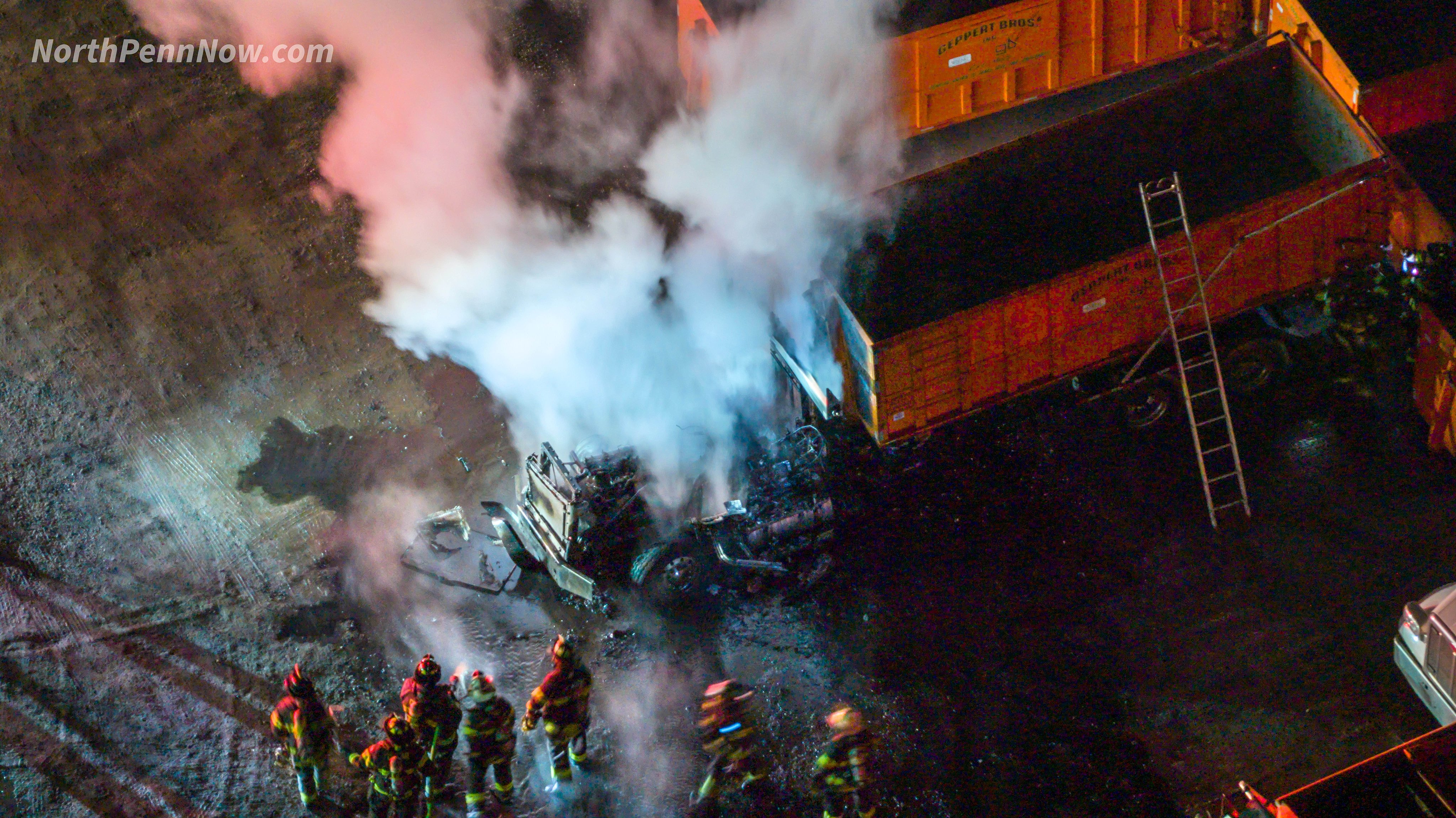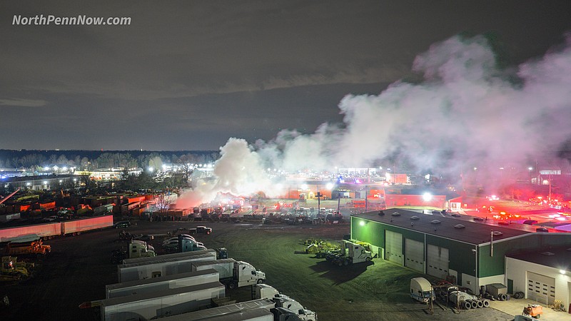 Less than 10 minutes later, at 8:34 p.m., emergency crews were dispatched to the 3100 block of Trewigtown Road in Hatfield Township, between Bethlehem Pike and County Line Road, for a second vehicle fire. Responding units found a dump truck-style vehicle with fire in the engine bay and cab, according to emergency radio traffic.