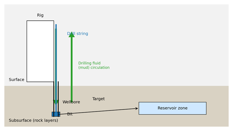 Figure 1. Drilling basics: rig, drill string, wellbore, and mud circulation