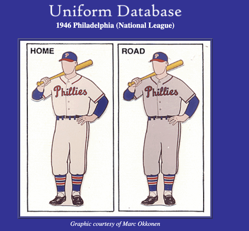 The first are the road jerseys that the Phillies wore from 1946-1949: