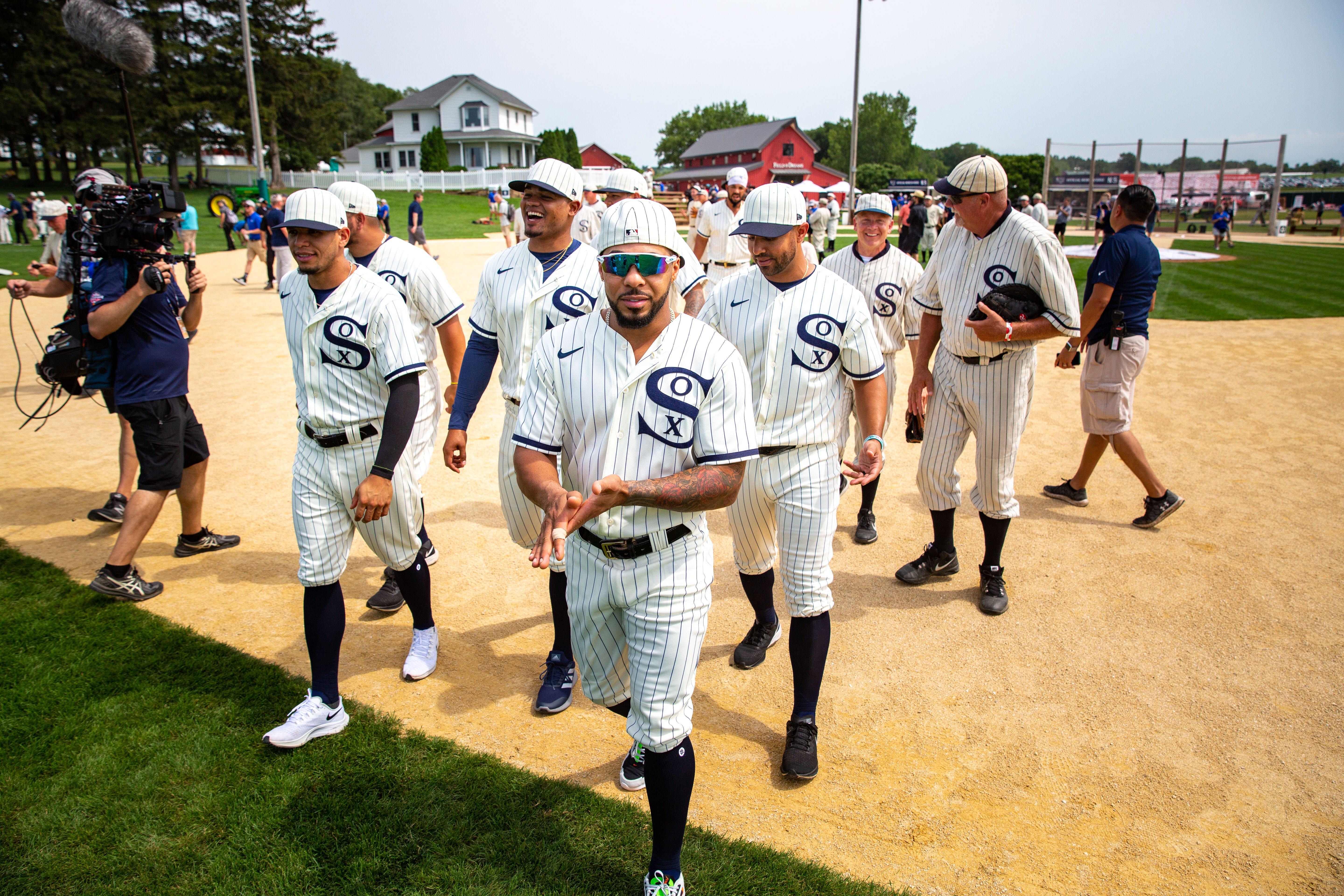Both the Yankees and Chicago White Sox sported throwbacks for the original Field of Dreams game on Aug. 12, 2021, an instant-classic game that ended with Tim Anderson hitting a walk-off home run into the corn field: