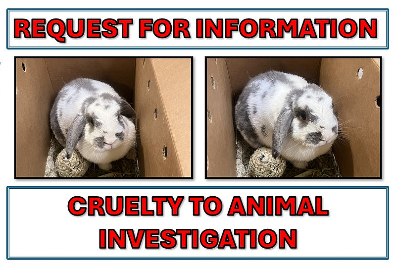 Officers were dispatched around 9:30 p.m. Jan. 21, 2025 to the area behind the new Harbor Freight store at The Shops at Town Square, where the rabbit was discovered in a plastic trash bag inside a dumpster, according to police.