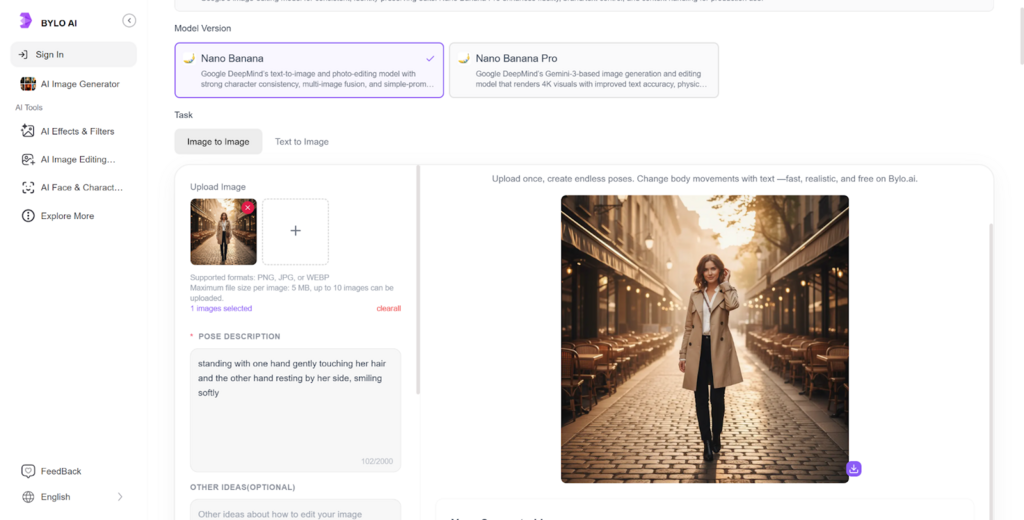 This is where AI pose generator is beginning to reshape visual workflows. By enabling realistic pose adjustments from a single image, tools such as AI pose changers reduce production friction while preserving visual accuracy. Platforms like Bylo.ai demonstrate how AI pose changer can help businesses and creators produce adaptable imagery faster, respond to changing content needs, and maintain consistency across campaigns.