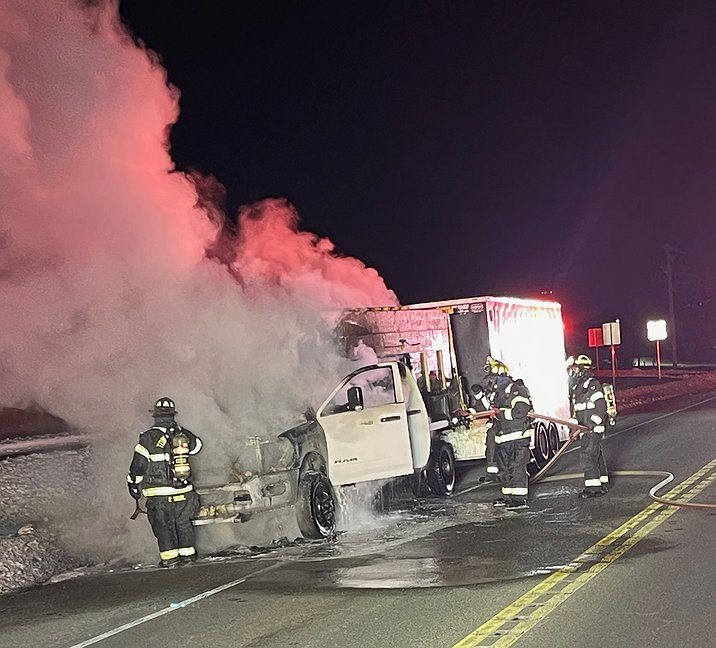 Emergency crews were dispatched around 10:12 p.m. to the 500 block of Wambold Road, near the self-storage facility between Schoolhouse and Fretz roads, for a reported dump truck fire. Units arrived on scene about 10 minutes later and found a white pickup truck outfitted with a makeshift wooden dump body burning.