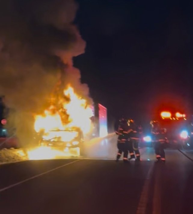 "He said the truck had been acting up throughout the day," Miller said. "When he was coming across Wambold, he noticed flames coming from the vents inside the dash. He pulled over and jumped out."