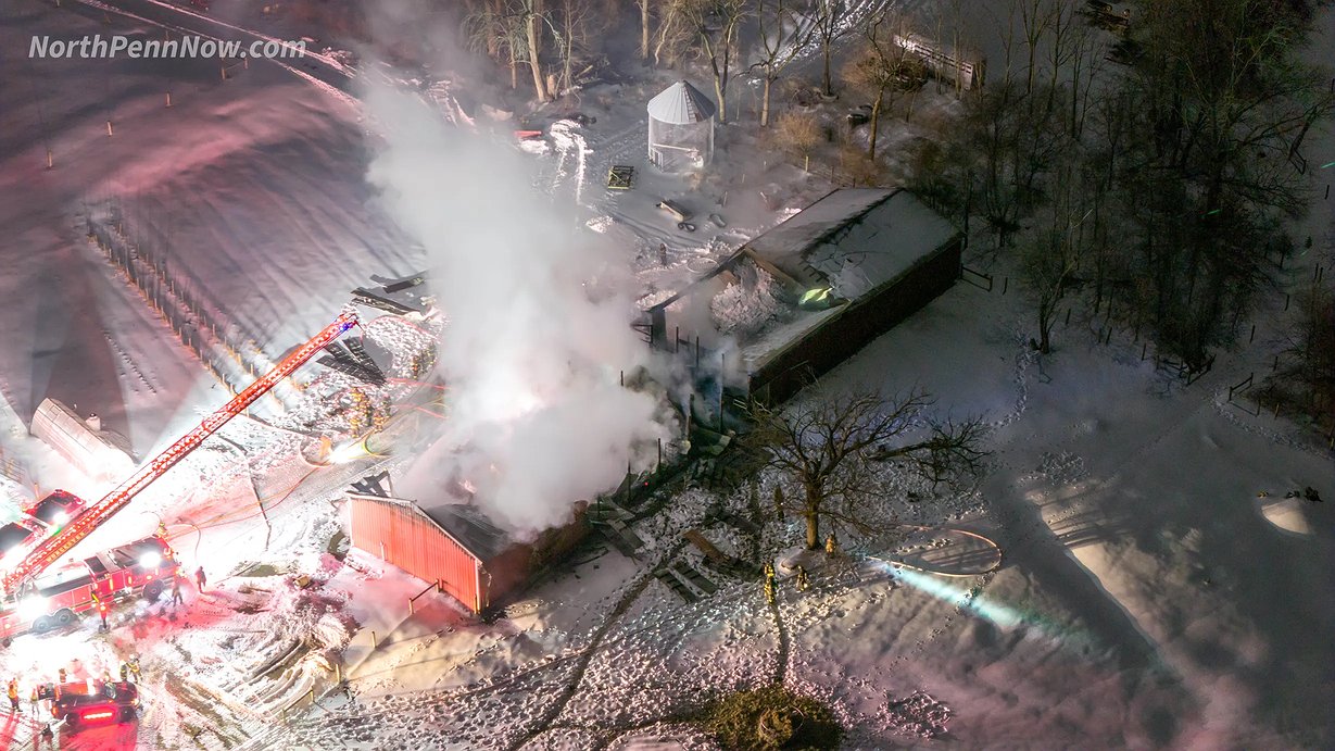 According to county dispatch, units were called to the 3100 block of Heebner Road in Worcester around 11:06 p.m. Friday, Jan. 30. The barn on the property was described as “fully involved” by those at the scene.