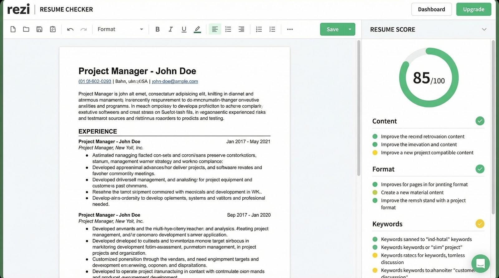 Keyword gaps are easy to fix once you spot them. Formatting errors are harder because you rarely see them until a bot scrambles your résumé. Rezi covers that blind spot.