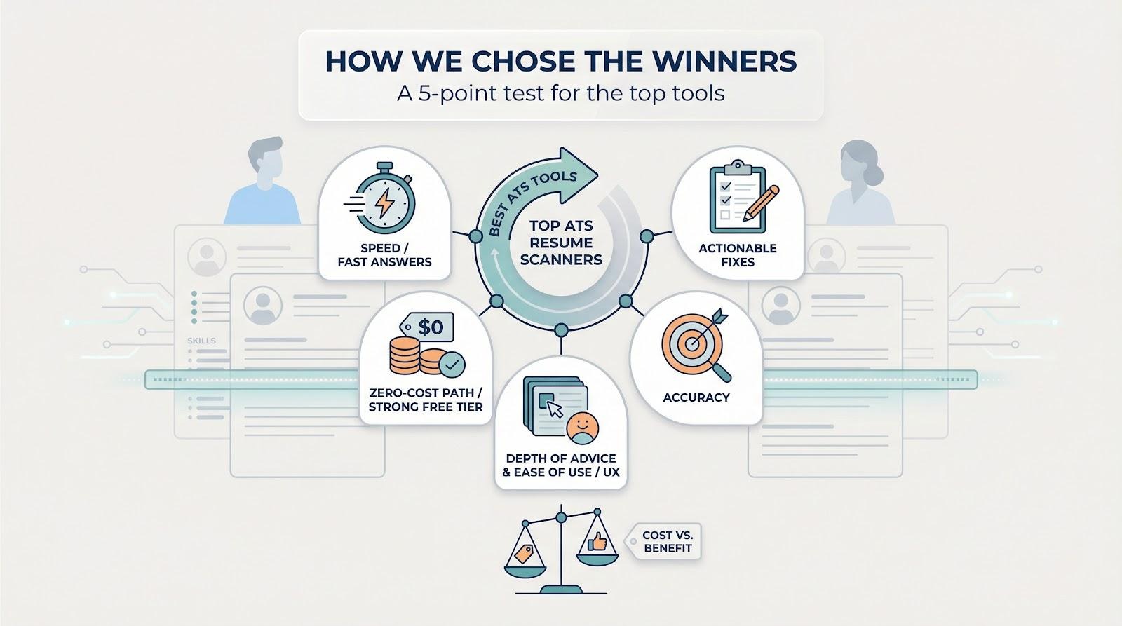 We began with a five-point test built around what job seekers tell us they value most: fast answers, actionable fixes, and a zero-cost path until the offer arrives. A tool had to clear that bar before price even entered the conversation.